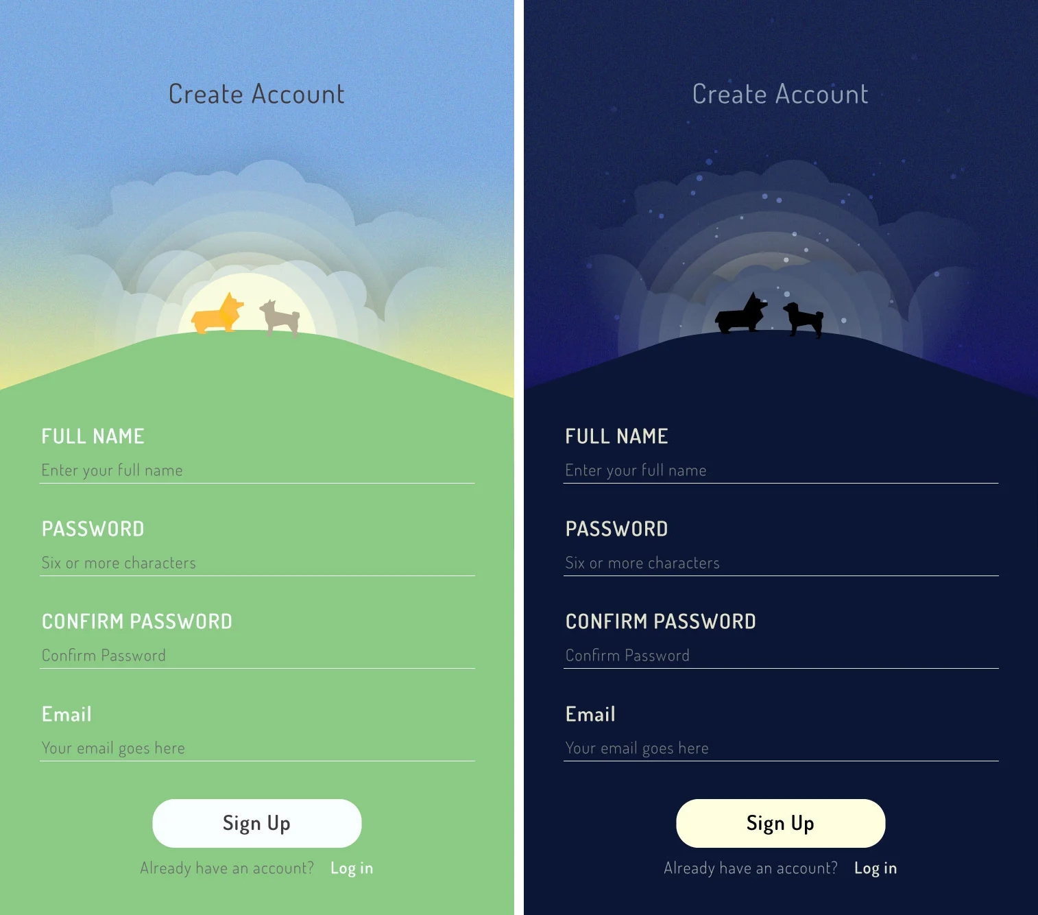Personal project designing a sign up page for a Pet Health Tracker app.